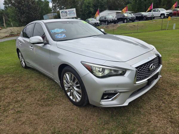 2019 INFINITI Q50 3.0T LUXE AWD with 121,621 miles. 2 Owners, Well Serviced with lots of service records on the CARFAX. $14995 plus tax and title. 3 Month 3,000 mile Certified Pre Owned Warranty included. We do not offer any financing or payment plans. We are happy to work with your own Bank or Credit Union. This is how we keep our prices competitively low. The Carfax can be viewed from our website. Extra clean Q50 AWD! This car is in excellent condition inside and out. Leather seats have almost no wear! Everything is in proper working order and needs nothing. Runs and drives perfectly! An amazing car at an amazing low price. Priced far below KBB and NADA values. Loaded with Navigation System, Rear Parking Aid, Bluetooth, Blind Spot Monitor, Rain Sensing Wipers, Moonroof, 2 Keyless Fobs, Remote Start, Heated Front Seats, Heated Steering Wheel, Power Driver and Passenger front seats, Fog Lights, HID Headlights, and so much more. Come see us today at Mardi Gras Motors 9269 HWY 18 in Raymond MS 39154. For more photos and information on this car and for a complete inventory list go to our website at mgmr.net or call Steve at 601-665-5429.