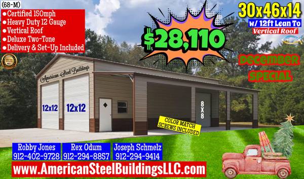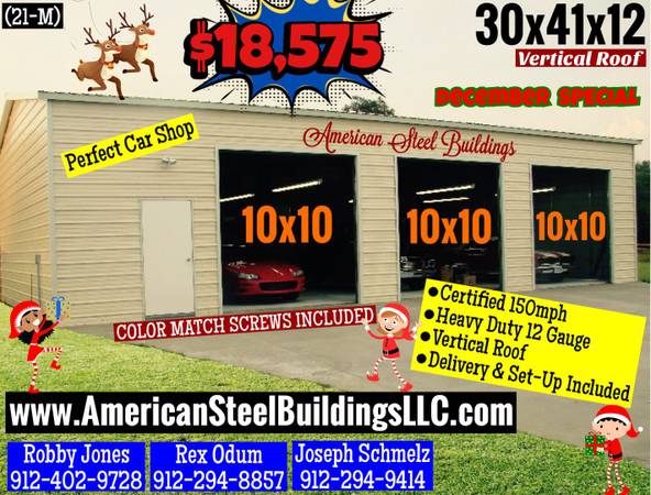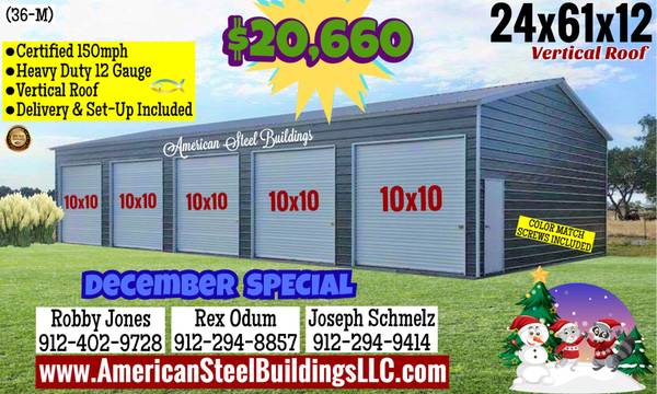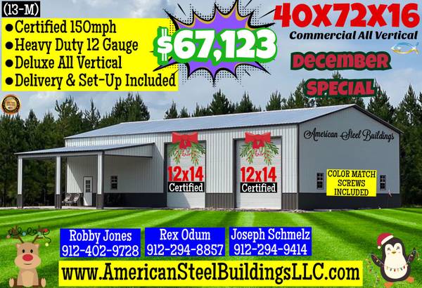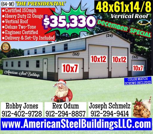Leading Dealer of Metal Buildings in the USA All of our buildings are certified to meet code and comes with a 20 year warranty From Small Garages to 60' wide Commercial Warehouses. We have the...