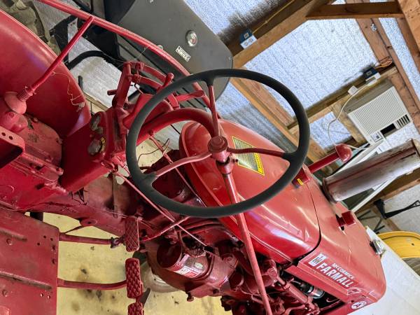 Farmall Super A tractor, I believe it to be a 1947 model. Tractor needs some work and TLC to be a show piece or a garden tractor, but it does crank and run. I don't know much about it other than it was my great grandfather's.