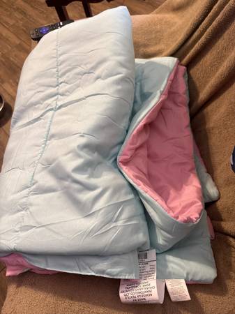 Two twin size comforters. Like new. One is floral and the other is reversible pink and green.