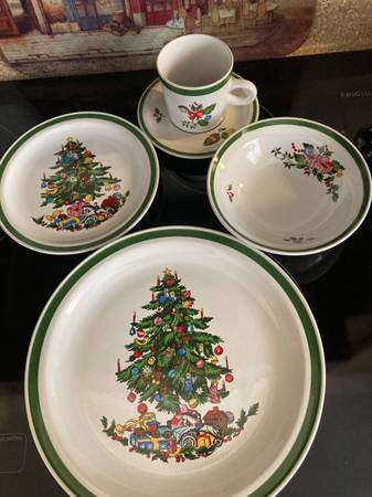 (There are basically 12 (5 piece place settings) and then extra 2 Dinner Plates, 4 Bowls, 4 Saucers,