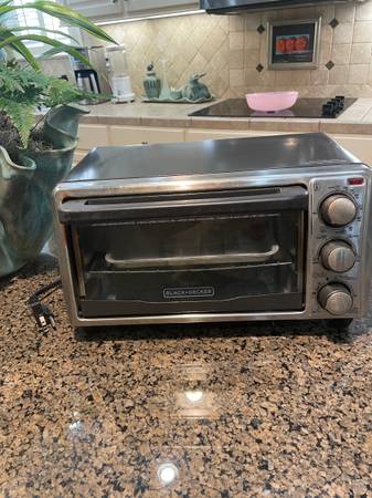 Black and Decker Toaster Oven, 14 " wide, 8" high, 10" deep. three controls, temperature, mode, and timer. Up to 450 degrees. Clean and works well. Pick up in Madison.