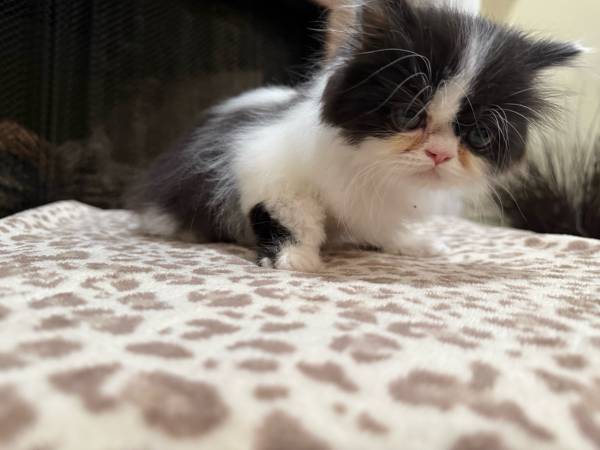 Bicolor Black & White Male Persian Kitten. Rehoming fee. Please text me for more details!