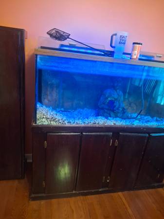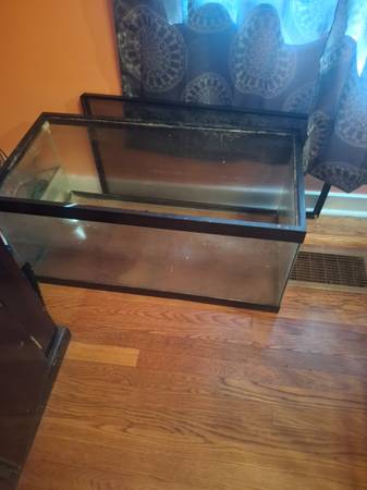 I have three aquariums up for grabs for $50 each. The largest one is a 100 gallon aquarium drilled for sump, the sump equipment does need to be resealed. But the front is watertight and comes with a cherry wood Style canopy and stand come in also a large jaguar cichlid. I also have a 40 gallon breeder aquarium with a screen lid. And a 38 or so gallon bow front with a stand and several platies and quarries. First come first serve.