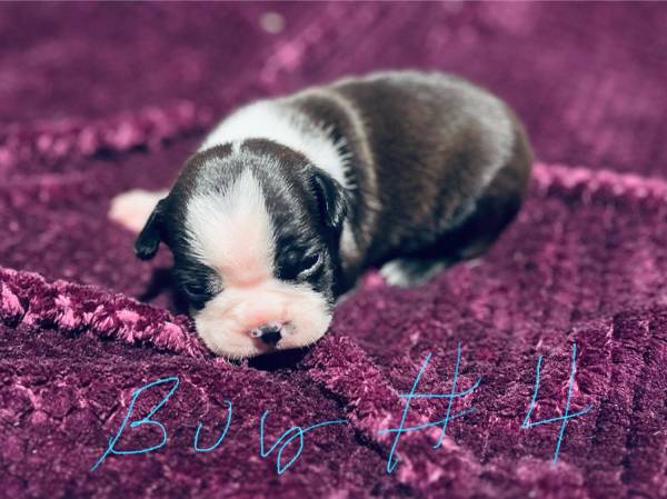Boston Terrier puppies dewormed at 2, 4, and 6 weeks. Vaccinated. Ready for rehoming November 7th. Rehoming fee applies. Call or text Kay for more info at .