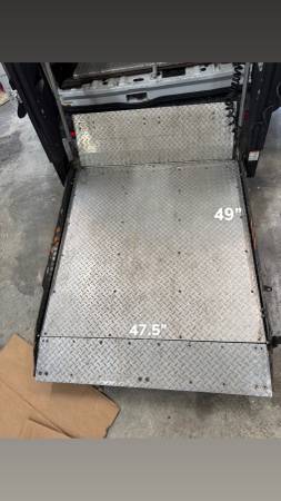 Tommy Gate Lift Gate. Currently in a Ford Transit. 47.5 inches by 49 inches. Rated for 1,100 pounds. Buyer can see it work in person and the remove from vehicle. Buyer will be responsible for...