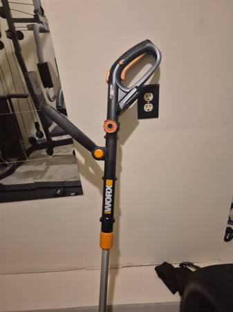 This is a used Worx string trimmer and edger the Little Wheel that helps you edge has broken off but the weed eater and edger works fine. it has the auto feeds feature where you just press the button and it automatically feeds the line.