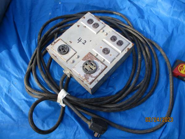 42 FT. 12-4 CONTRCTORS EXTENSION CORD WITH BREAKER BOX. I HAVE SEVERAL OF THE THESE CORDS LOTS OF HEAVY COPPER WIRE 6 AND 8 GUAGE.