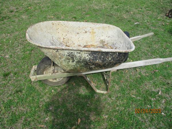 HEAVY CONCRETE WHEELBARROW. NEEDS A TUBE HAVE TWO TAKE YOUR PICK.