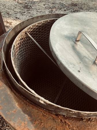 6'11"W x 15'6"L; two stainless steel cookers - 30" round and 30" deep; with baskets